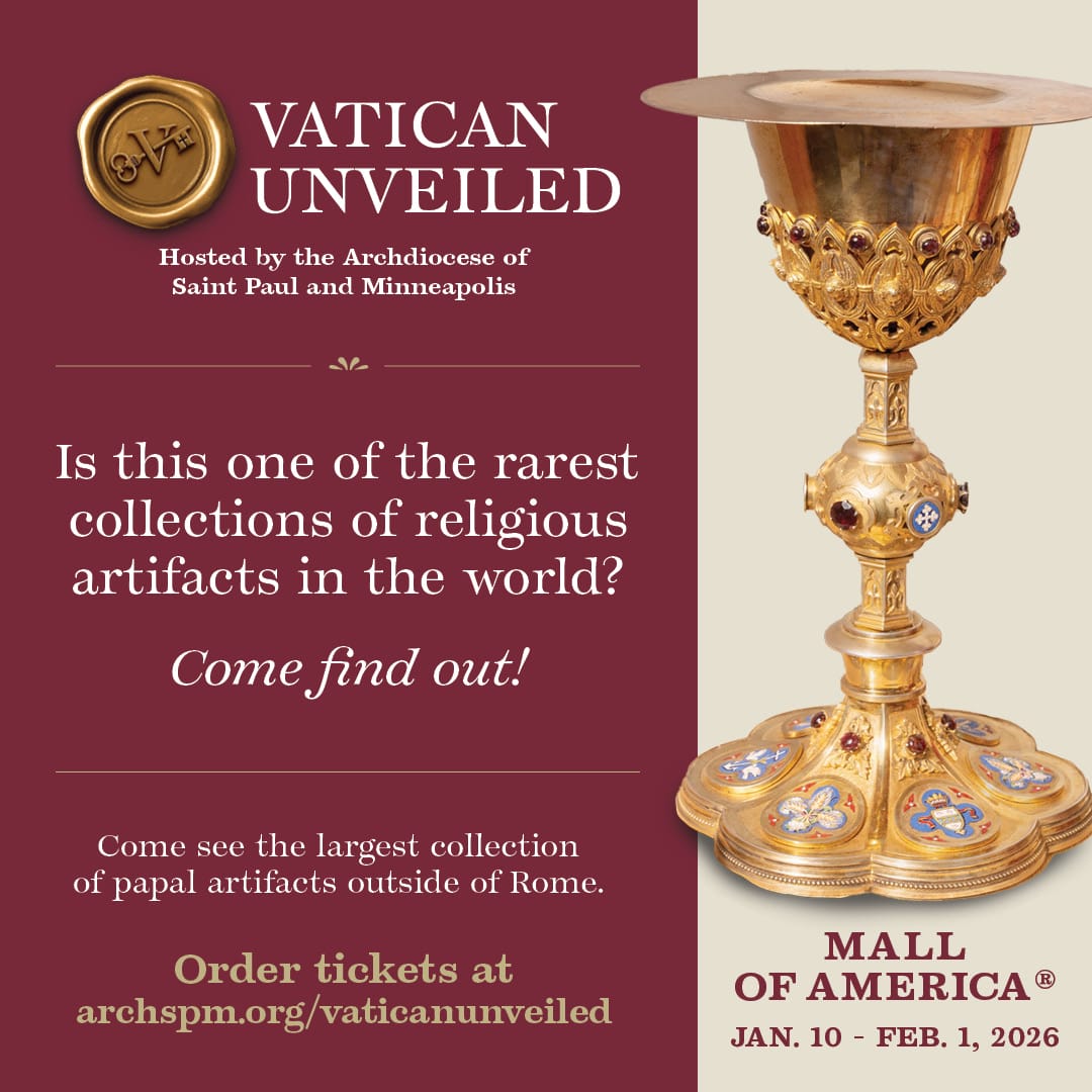 Experience interesting historical perspectives, artistic items with old-world craftsmanship, and papal artifacts that show the humanity behind the leaders with Vatican Unveiled, the largest collection of papal artifacts outside of Rome. Visit archspm.org/vaticanunveiled to learn more!